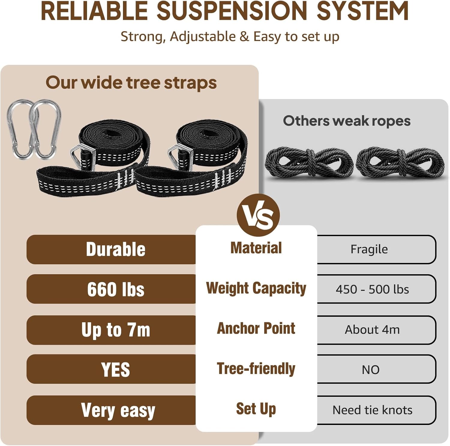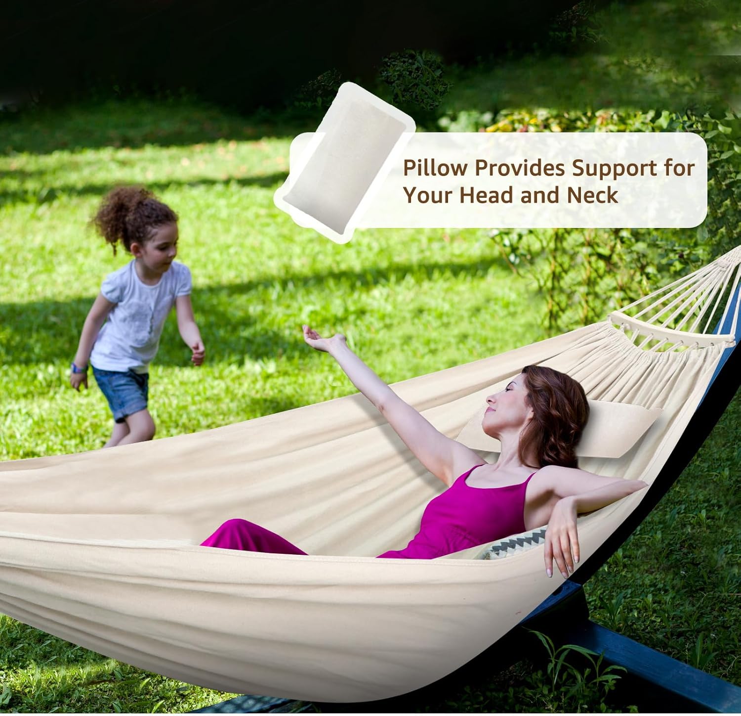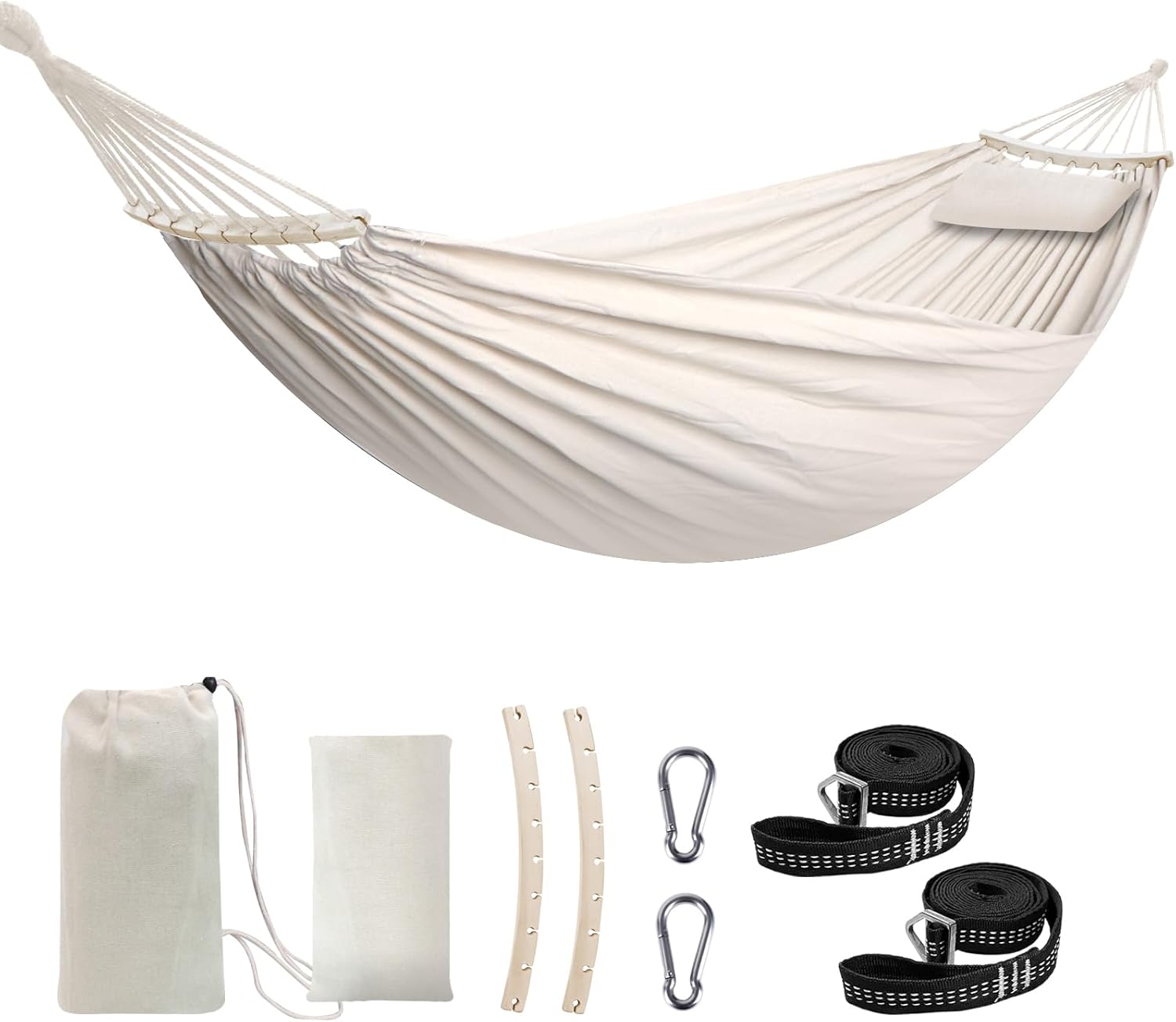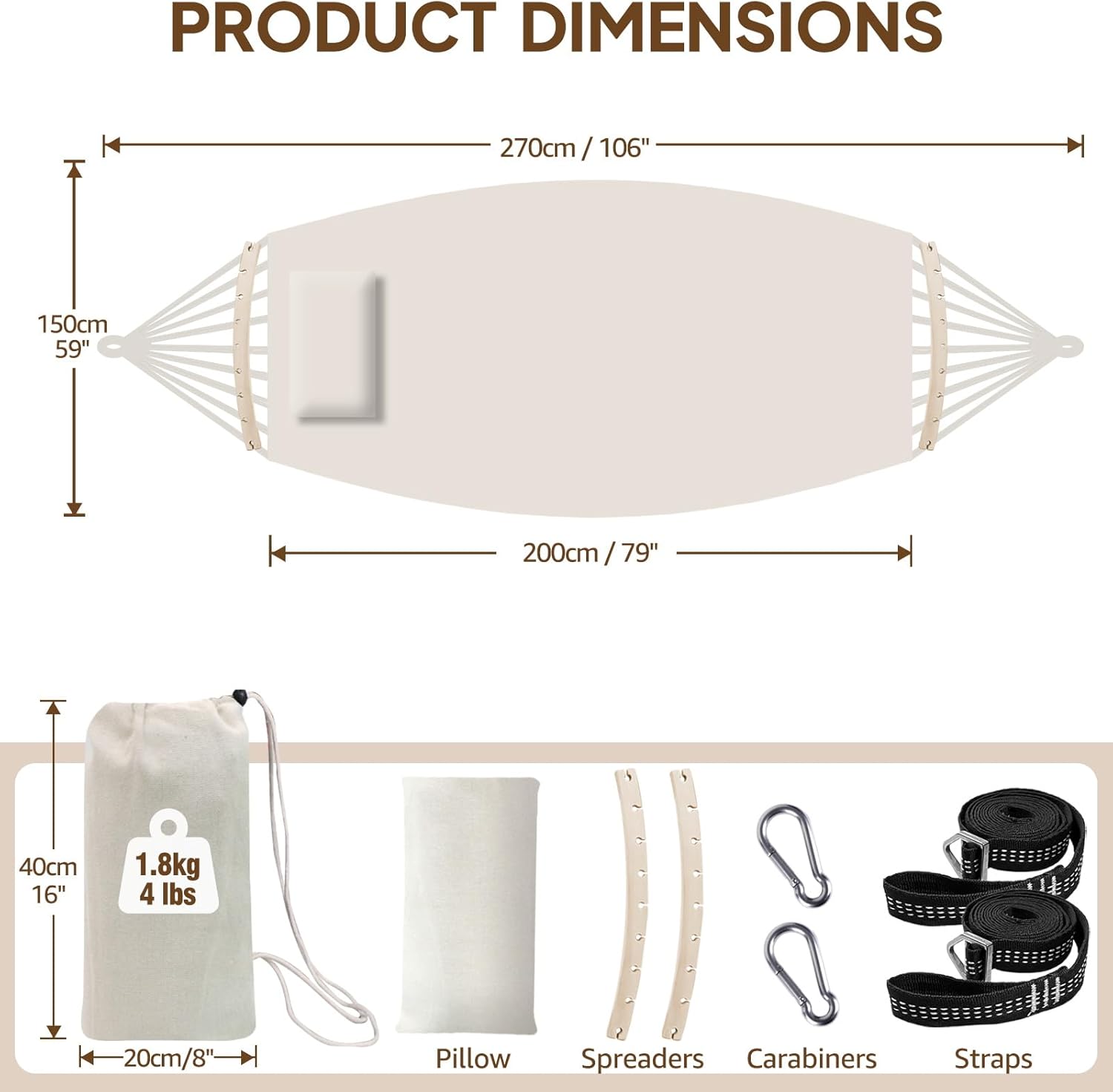 The Chihee Cotton Hammock is the perfect addition to your outdoor relaxation routine. Made of soft and breathable cotton, this hammock can hold up to 660lbs, making it perfect for lounging with a friend or loved one. The detachable spreader bar and pillow provide added comfort and support, while the two strong webbings and carabiners make it easy to set up and take down. Whether you’re hanging out in your patio, garden, or even indoors, this portable hammock is sure to provide hours of blissful relaxation. So kick back, unwind, and enjoy the great outdoors in style with the Chihee Cotton Hammock.