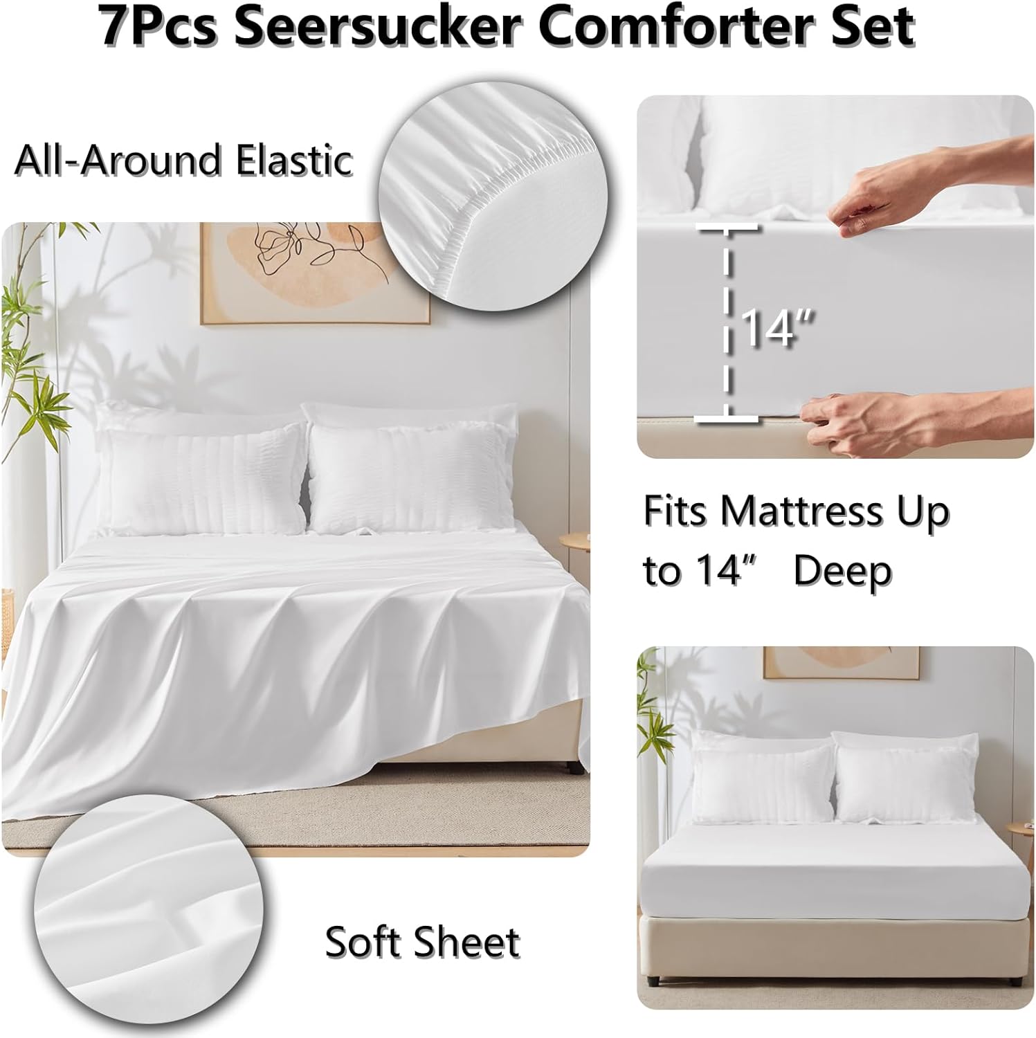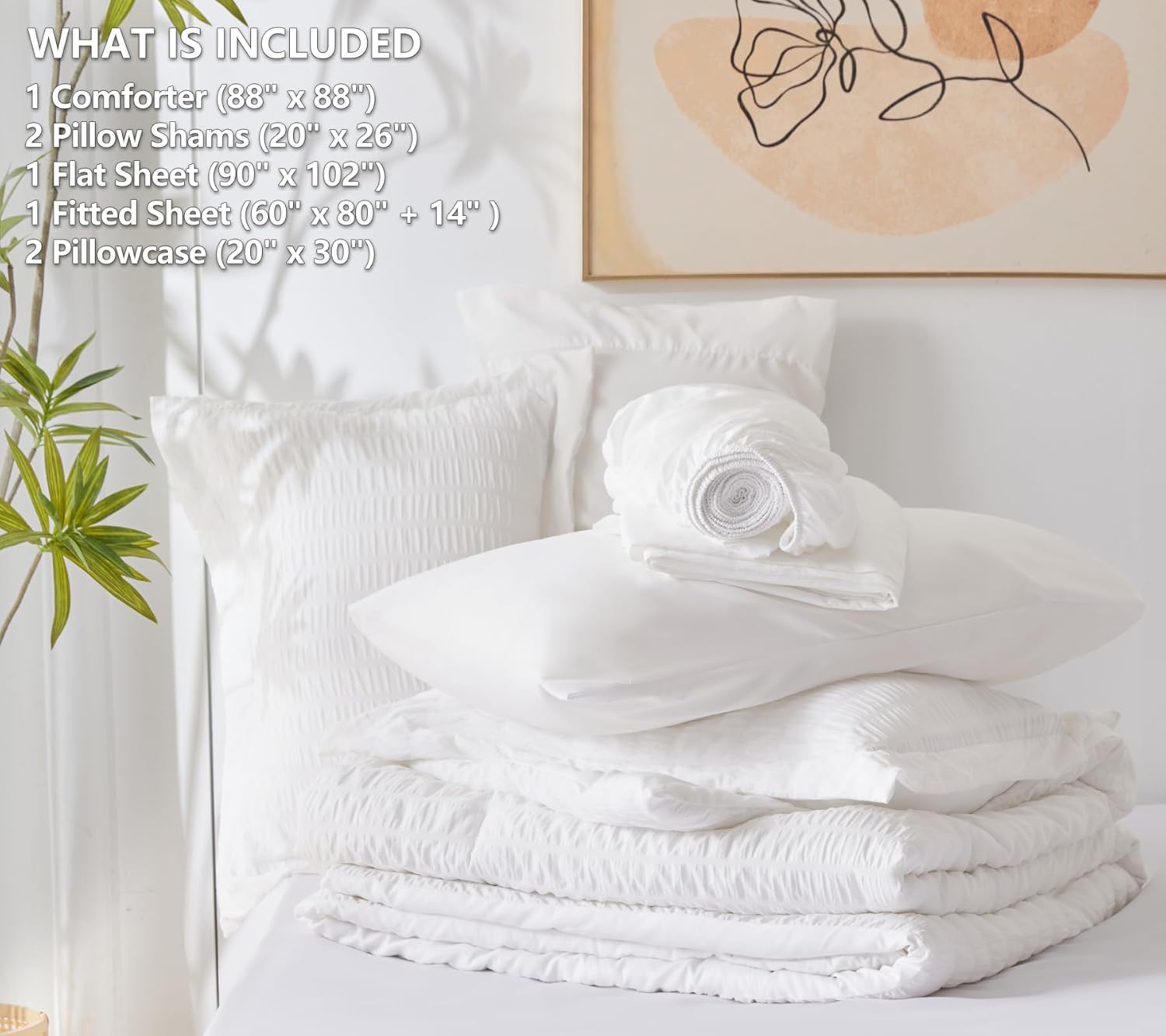 Transform your bedroom into a luxurious oasis with the CozyLux Queen Bed in a Bag White Seersucker Comforter Set. This 7-piece bedding set includes everything you need to create a cozy and stylish retreat. The set features a soft and plush comforter, two pillow shams, a flat sheet, a fitted sheet, and two pillowcases, all in a crisp white seersucker design. The all-season bedding is perfect for year-round use and will add a touch of elegance to any bedroom decor. Treat yourself to a restful night’s sleep with this beautiful and comfortable bedding set from CozyLux.
